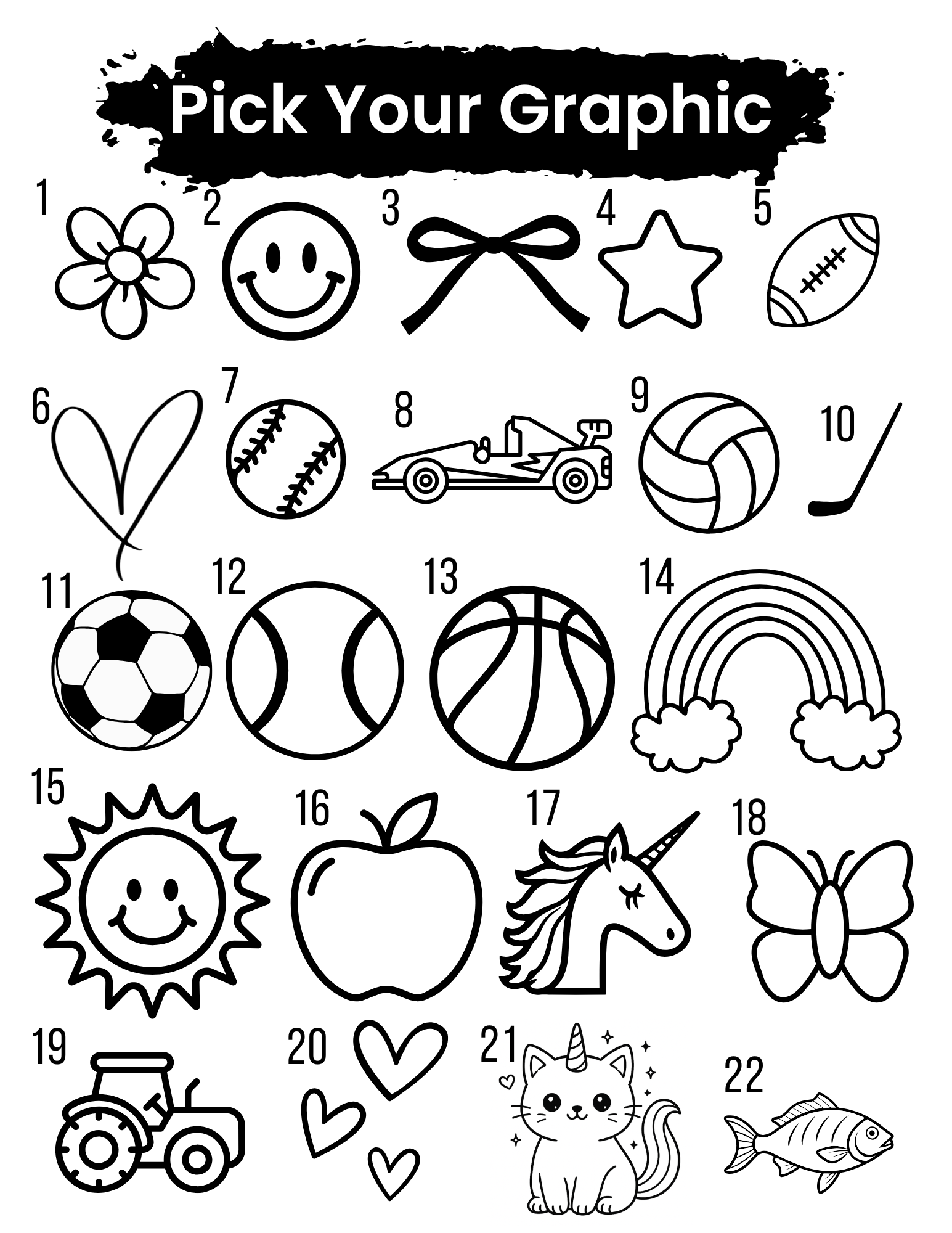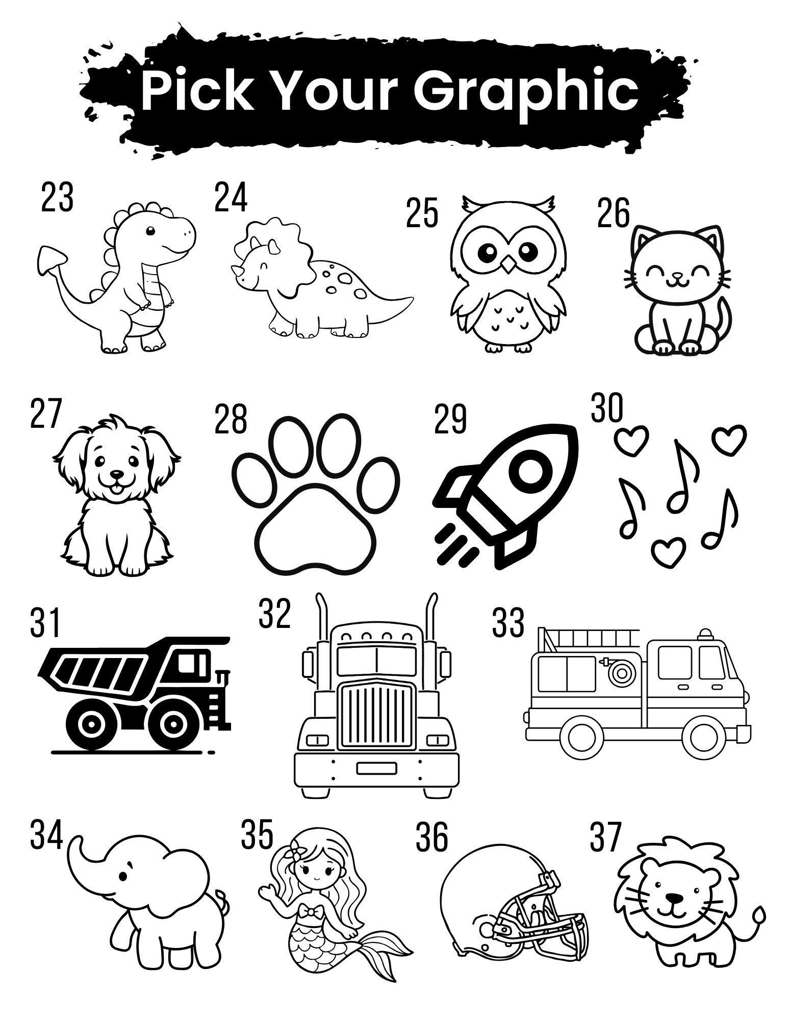 - Pick a Graphic (note in engraving box number of graphic you'd like)