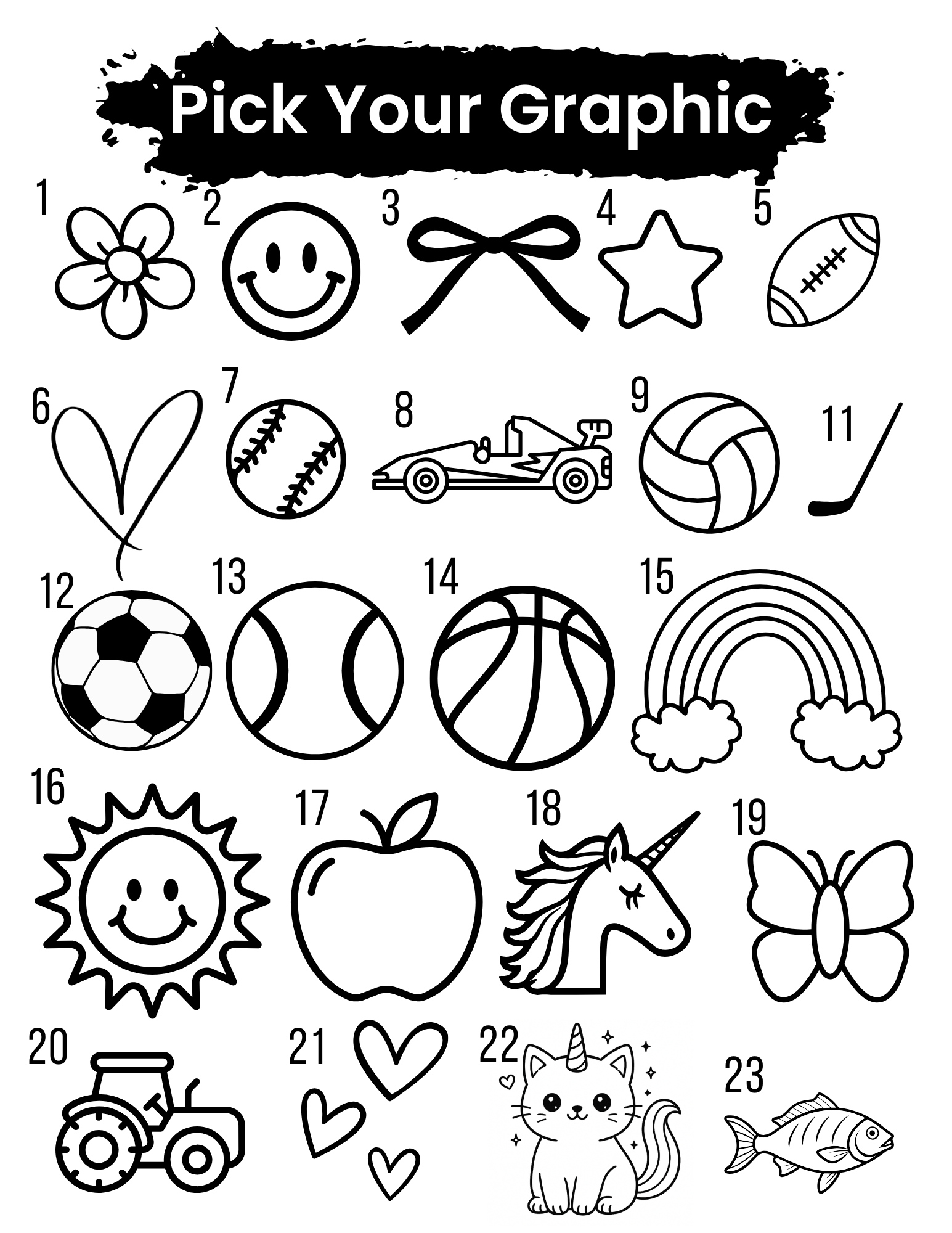 - Pick a Graphic (note in engraving box number of graphic you'd like)
