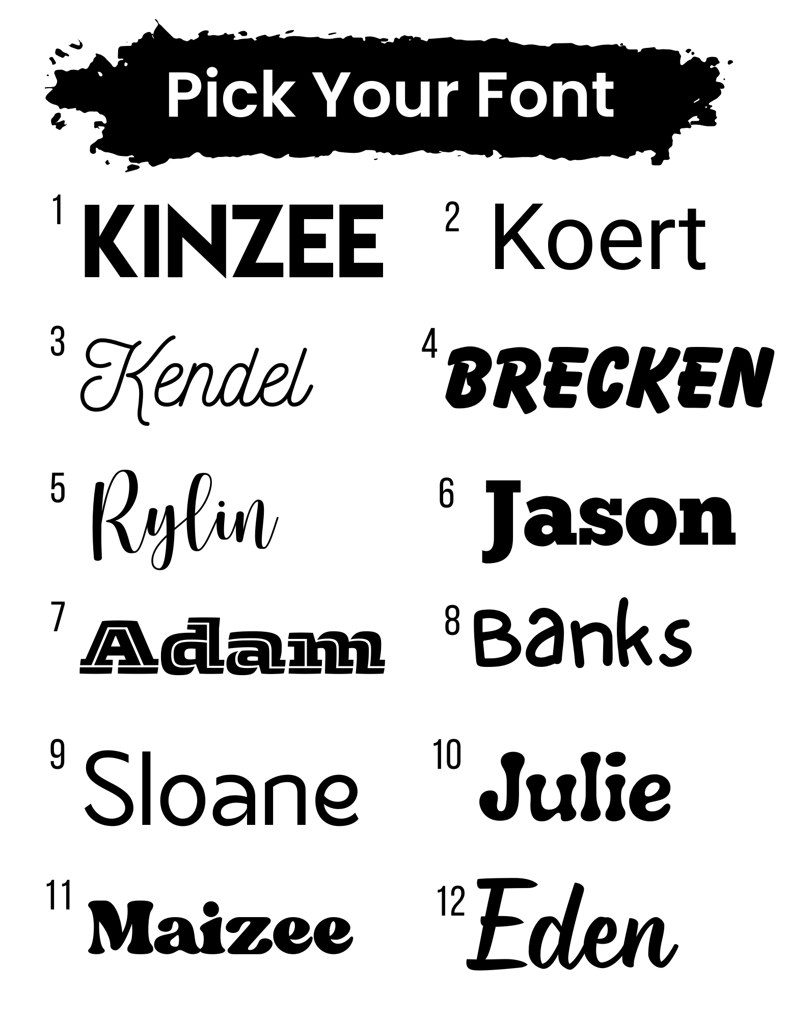 - Pick the Font (note in engraving box number of font)